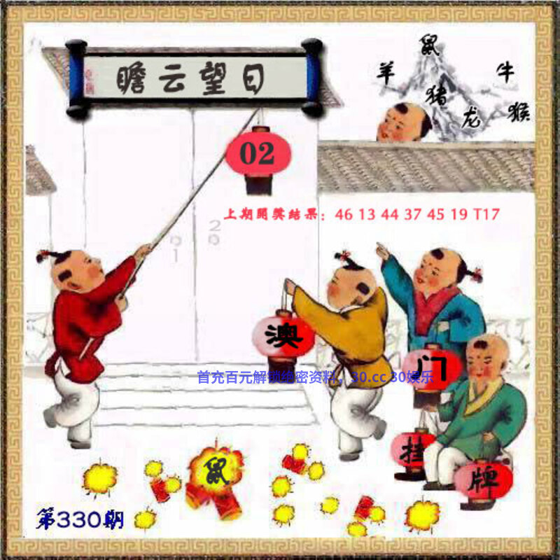 330期挂牌《瞻云望日》 解释:原指贤明君主恩泽施及百姓,后比喻得近天子 解:天子解天肖龙兔牛猴猪马,挂:02爆:鼠。 七肖:鼠龙兔牛猴猪马 |